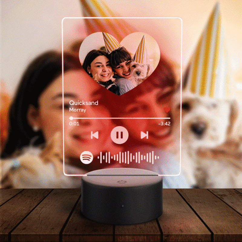 Seven Colors Spotify Glass Custom Heart Photo Scannable Music Plaque Night Light Birthday Gift